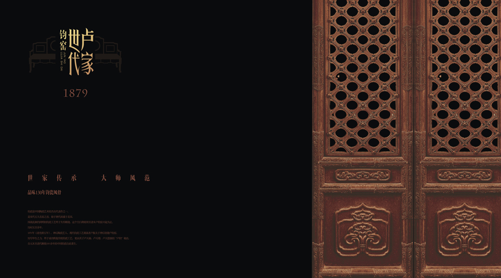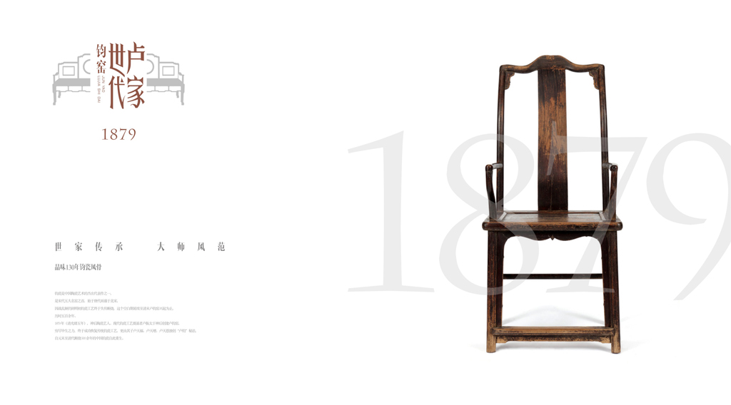 市面上鈞瓷品牌多數(shù)是印章的形式,只能反映是個傳統(tǒng)的產(chǎn)品無法再過多文化解讀而盧家鈞瓷,具有復燒鈞瓷的行業(yè)地位,又有一脈相承的特征,是其它品牌無法比擬的文化高地我們將這種傳承深化挖掘在品牌中滲透進“晚清、民國、世家大宅、名門望族”氣質(zhì)特征彰顯尊貴地位的同時能使整個品牌有一種文化帶入感。
